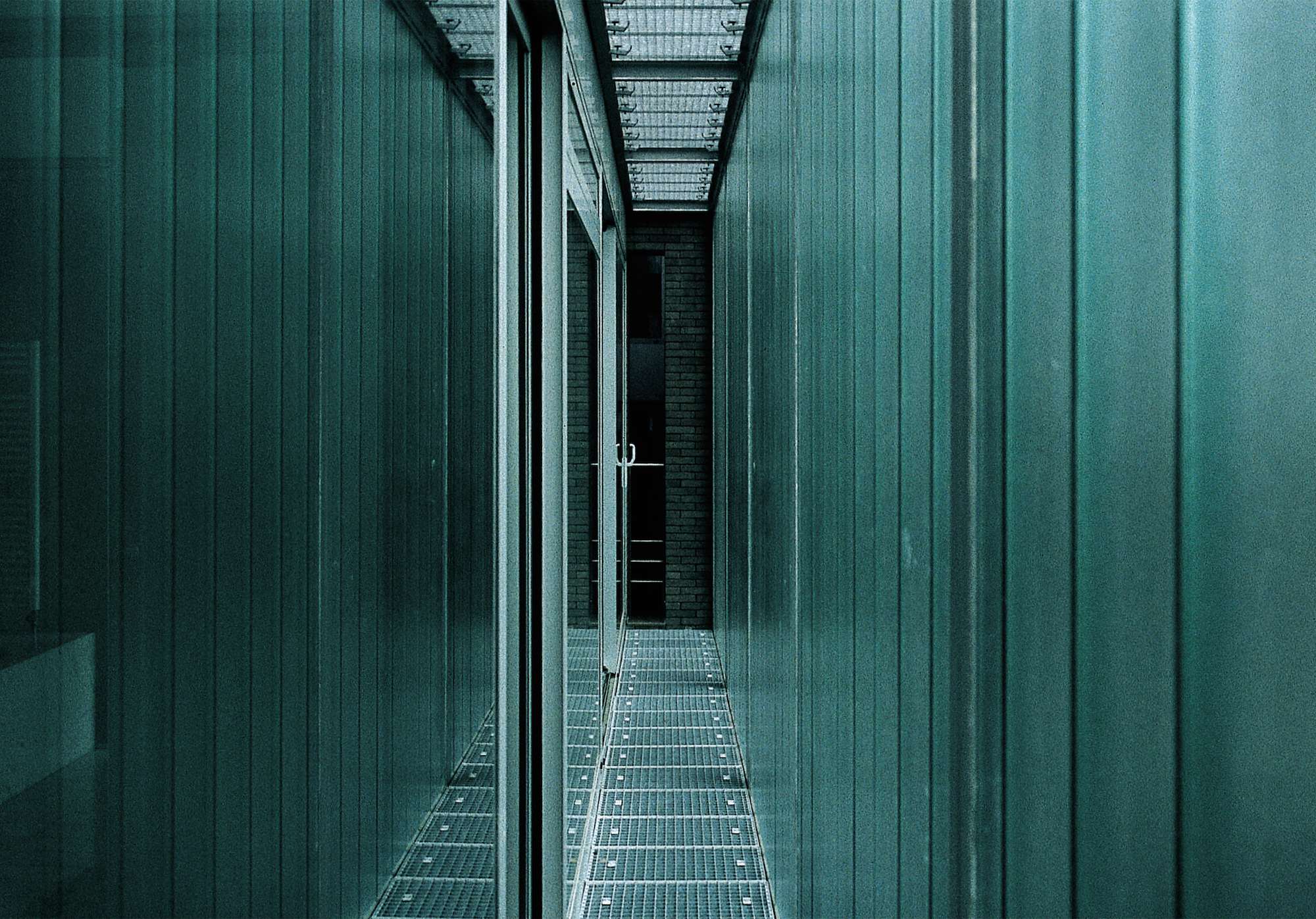 Naast het intimiteitsscherm, werd een tweede glazen wand geplaatst op 50 cm van de perceelsgrens, waardoor exacte belichting van de achtergelegen ruimtes mogelijk is. In de zone tussen scherm en wand is op elke verdieping een roosterstructuur aangebracht die het mogelijk maakt ook achteraan naar buiten te kunnen zodat de grenzen van het gebouw, cf. de reglitschermen in de gevels, diffuus worden, waardoor een groot gevoel van vrijheid ontstaat.